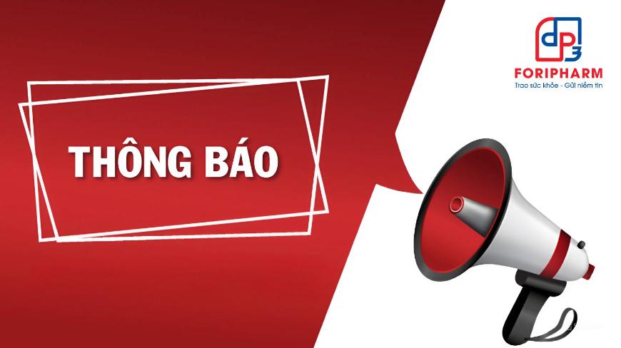 THÔNG BÁO Kính gửi: Quý Khách hàng! Công ty Cổ phần Dược phẩm Trung ương 3 xin trân trọng cảm ơn sự quan tâm, tín nhiệm và ủng hộ của Quý Khách hàng trong suốt thời gian qua! Tiếp nhận công văn số 1623/SYT-ATTP ngày 29/04/2025, của Sở Y Tế Thành Phố Huế về việc […]